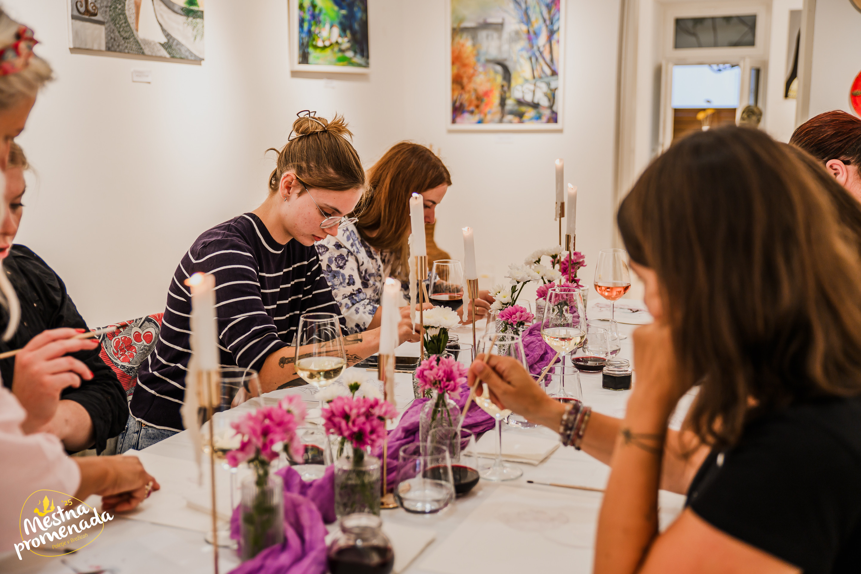Ob kozarcu lokalne penine boste pod vodstvom mentorice ustvarili svojo sliko, ujeli praznični navdih in morda odkrili umetnika v sebi.