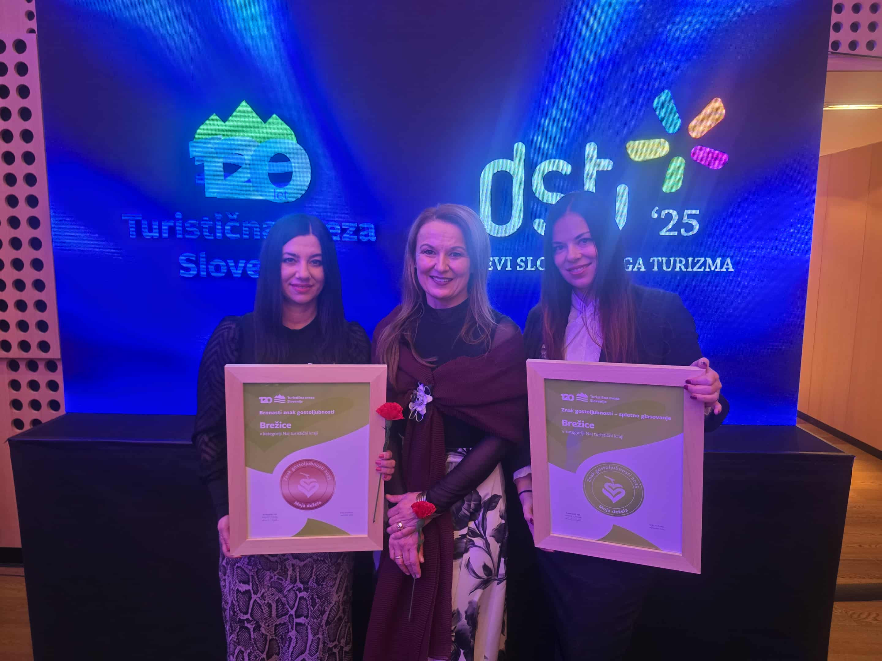 Na Dnevih slovenskega turizma 2025, ki so potekali od 10. do 12. novembra na Brdu pri Kranju, je Turistična zveza Slovenije razglasila prejemnike priznanj v okviru nacionalnega natečaja Moja dežela – znak gostoljubnosti 2025. Med nagrajenci je tudi destinacija Brežice, ki je prejela kar dve pomembni priznanji: